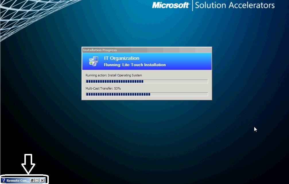 The connection is established to the running WinPE session. From here you can.observe the installation progress, or if necessary troubleshoot.