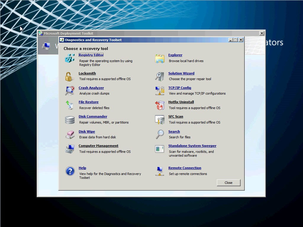 These DaRT tools are part of the Diagnostics and Recovery toolset included in MDOP, and we have been able to create this DaRT recovery environment before, MDT 2012 just allows us to integrate the tools directly into the Windows PE boot images.