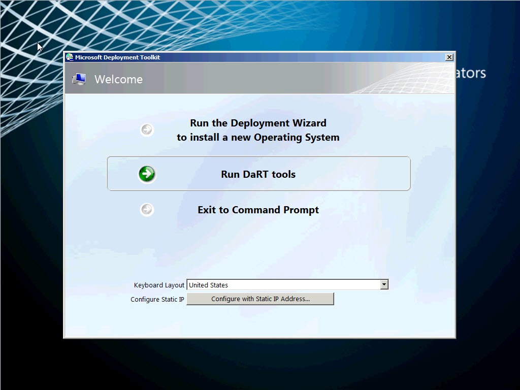 If you select “Run DaRT tools”, you will have the option to perform a variety of tasks, ideal for troubleshooting a failed system.