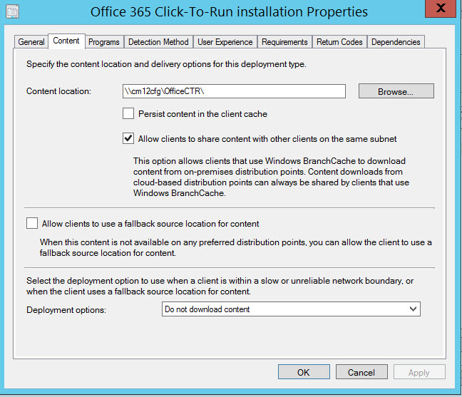 Deploying Office 365 Click-to-Run as a Configuration Manager 2012 Application