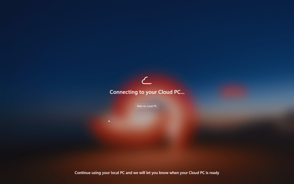 Click on your Cloud PC and you will see a notice that the connection to your cloud PC is being established. Seconds later you will be switched to your Cloud PC.