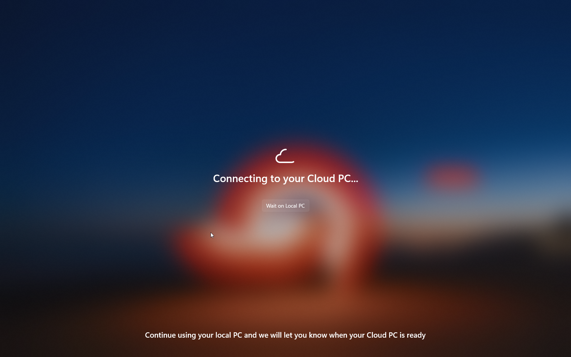 Click on your Cloud PC and you will see a notice that the connection to your cloud PC is being established. Seconds later you will be switched to your Cloud PC.
